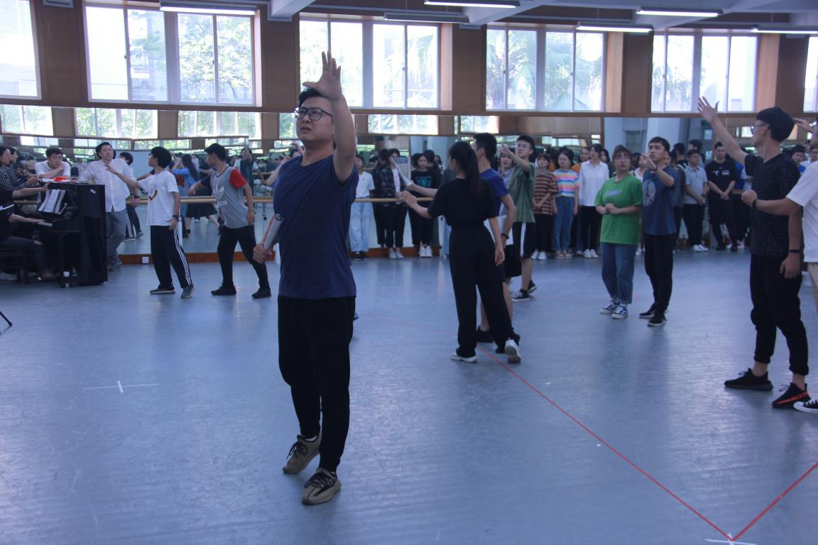尽管烈日当空,领导们仍然惦记着正在排练中的师生。师生以铿锵有力的掌声欢迎领导的到来并热情地接待了各位领导。紧接着便是歌剧《五星红旗》的排练,《五星红旗》是毒舌电影