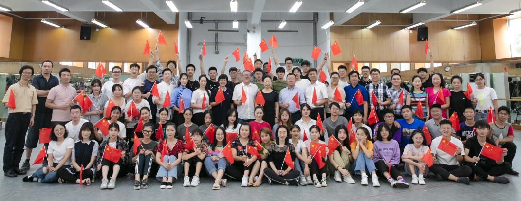 2019年9月14日,温州市委常委、宣传部长胡剑谨一行人在我校党委书记谢树华等陪同下,莅临我院音乐楼舞蹈厅对排练原创歌剧《五星红旗》的师生们表示亲切的问候。