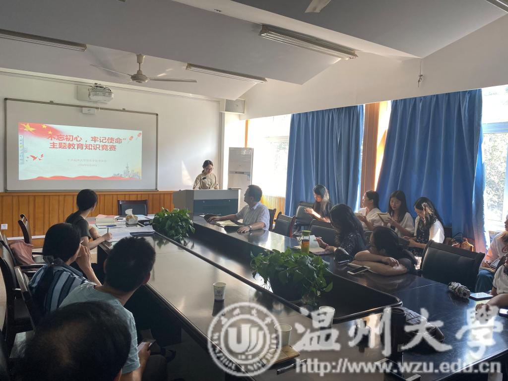会议上,朱书记通报了学校“不忘初心、牢记使命”主题教育的开展情况,并对上一阶段主题教育学习做总结,并推进下一阶段的主题教育内容。朱书记强调各支部依然围绕“守初心、担使命、找差距、抓落实”开展线上线下学习,用自身专业开展相关特色党建活动,互相督促、互相学习。另外就“不忘初心、牢记使命”主题教育应知应会内容开展了主题教育知识竞答,进一步加深学习了主题教育活动的相关内容。