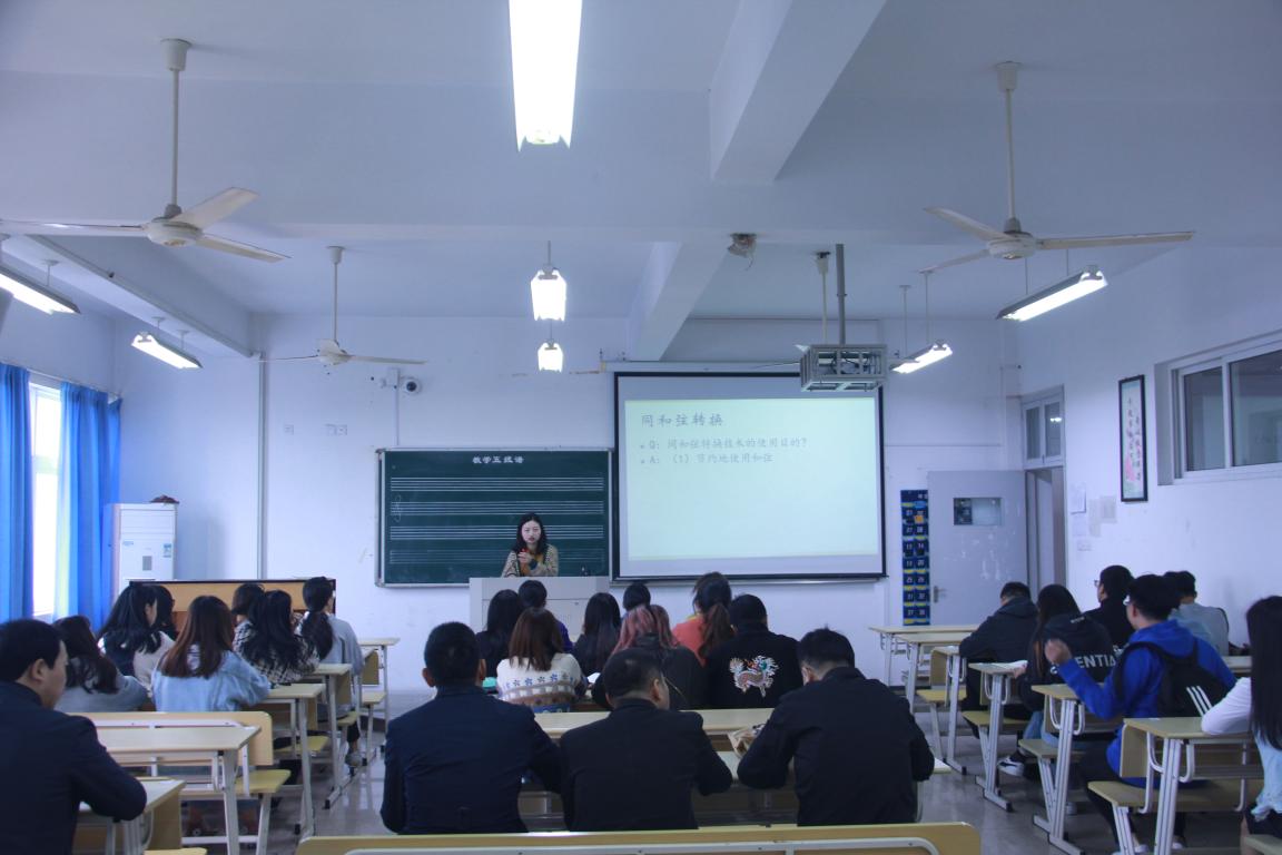 旭日初升,同学们很早就到达了外语楼406教室,虽然同学们都早已大致了解了这节课的内容,但热情与期待依旧洋溢在他们幸福的面庞。郑博士,是同学们甚为喜爱的老师,所以这场公开课的气氛很是轻松活跃。在课堂上,郑博士讲解了关于三音跳进的思考及相关知识。本次课堂的创新性是一大亮点,师生间的互动非常频繁,老师富有逻辑性与趣味性的语言吸引着在场的所有人。课程时间非常短暂,但浓缩的都是精华。认真的讲解充分展现了郑博士的专业性,学生们专注的眼神与挺直的腰板诉说着学生们对于这节课的热爱。现场数位院领导和专业老师到场旁听,本次课程结束后他们在公开课研讨会上对郑博士的讲课进行了具体的分析。