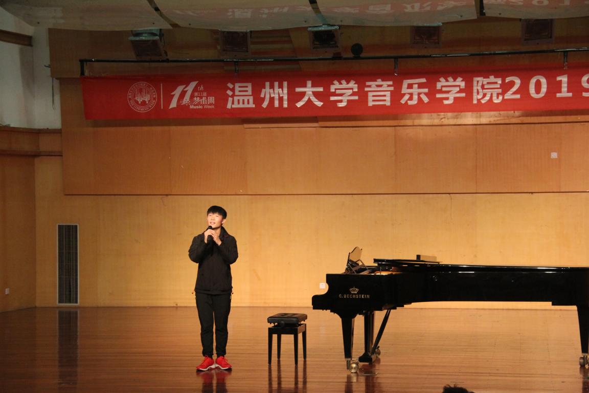 首先是张腾霄同学带来的一首自弹自唱的歌曲周杰伦的《蒲公英的约定》,这首歌延续了周杰伦一贯的风格,张腾霄同学唱出了许多人初恋情感,也是校园民谣的典范,在场同学都沉浸在其中。接下来,是李宾宾同学演唱的《我像雪花天上来》,由杨志坚同学进行钢琴伴奏,此曲不但表达可对爱情的忠贞,也可表达祖国的深沉炙热的爱意,李宾宾同学的美声演唱十分舒展明亮,一展乐曲的深邃意境。紧接着是徐嘉雪同学演唱的《一杯美酒》,这首维族歌曲充满了我国少数民族人民的别样风情,表现出了他们对生活的热爱,徐嘉雪同学的美声婉转动人,自带一种风趣,表现出了此曲的民族特色。这之后,是唐悦欣同学演唱的《我喜欢上你时的内心活动》,是电影《喜欢你》的主题曲,生动的刻画出小女生在爱情中小心翼翼的可爱神态,歌词质朴动人,抒发着对小女生喜欢你的理解,唐悦欣同学将整个曲子可爱动人,又充满着爱情的粉红色泡泡的感觉表达的十分深切,让听众仿佛也体会到了爱情的甜蜜。除了以上节目,还有彭凌霄同学带来的吉他独奏《夏末的海》、由金屹洋同学吹奏的唢呐《正月十五闹雪灯》、仇鑫桥同学演唱的《你把我灌醉》以及唐悦欣同学带来的舞蹈《追光者》。每一首都给大家留下了深刻的印象。倪祎璇同学的琵琶独奏《龙船》,《龙船》是首民间琵琶独奏大曲。它由几首民间小调与锣鼓点组成。由于它的内容通俗易懂,也富有一定表现力与艺术性,也成为妇孺皆知、雅俗共赏、非常受欢迎的乐曲。方力平同学的柳琴独奏《雨后庭院》、沈家豪同学的《梨花颂》更是让大家眼前一亮、耳目一新。吴昊梆同学的《嘎哦丽泰》将歌曲情感拿捏的十分到位,唱出了歌中人失去爱人的痛苦、彷徨。最后是唐悦欣同学的《侏儒舞》作为本届新生才艺大赛的结尾。