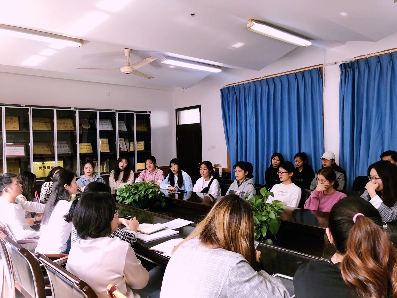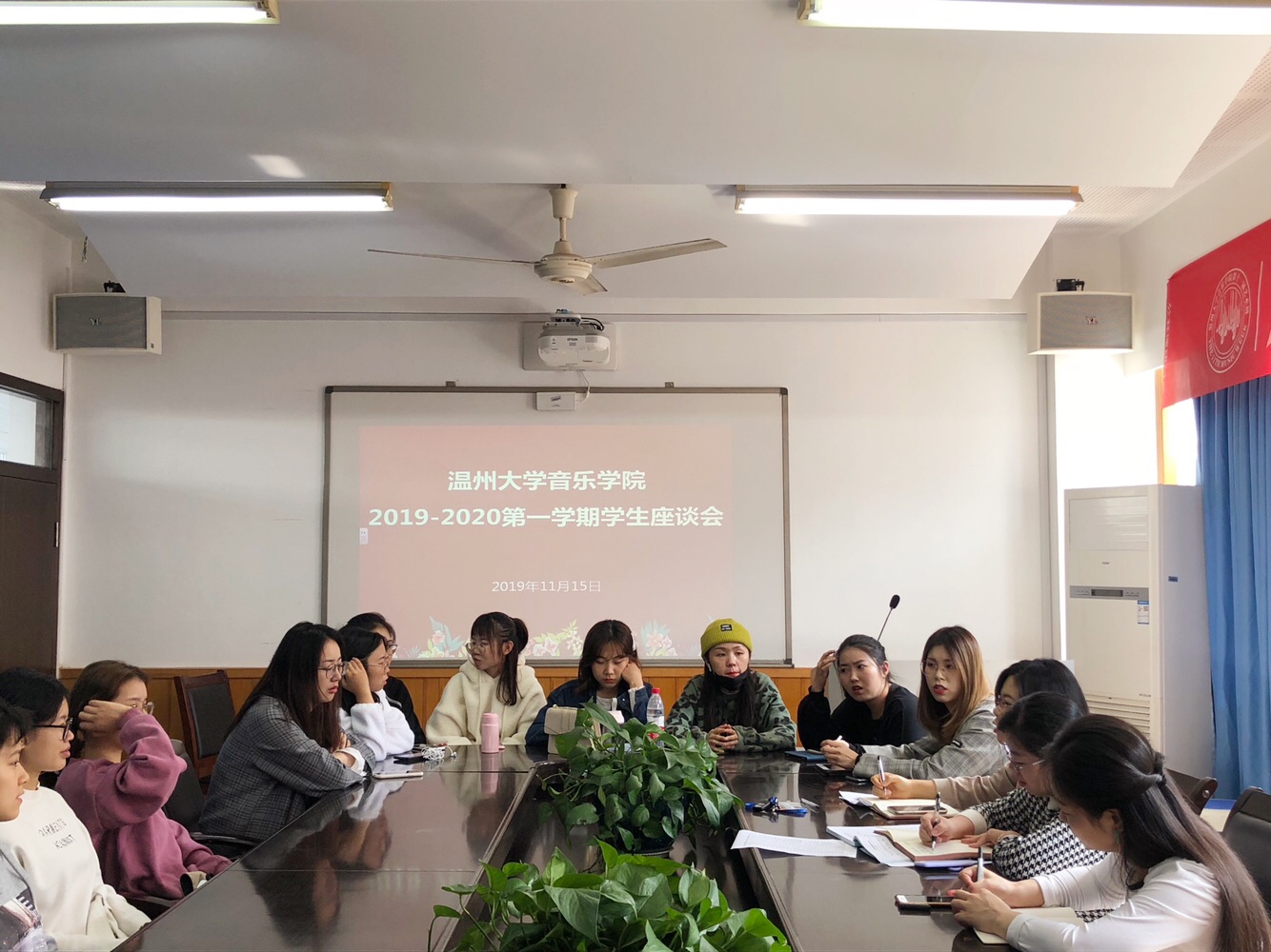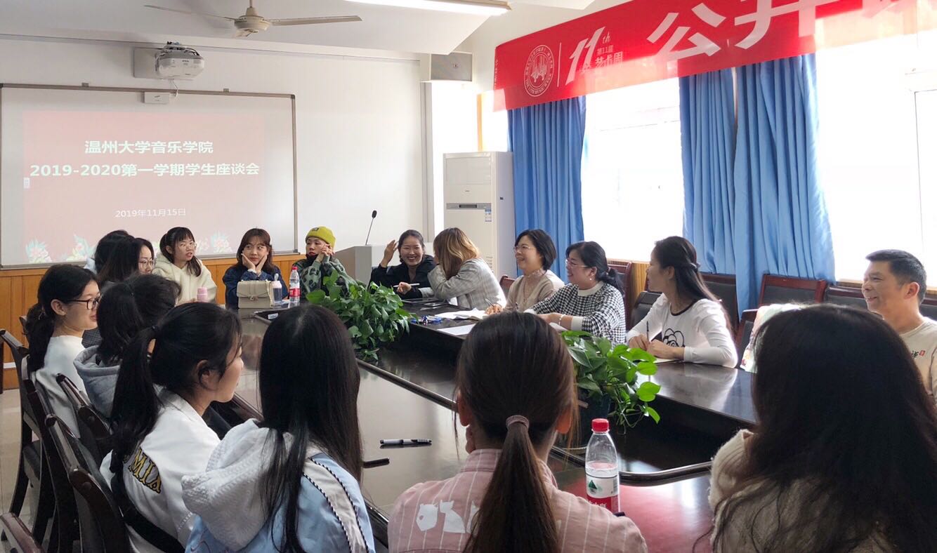 在音乐楼203会议室召开学生座谈会,参加会议的有毒舌电影