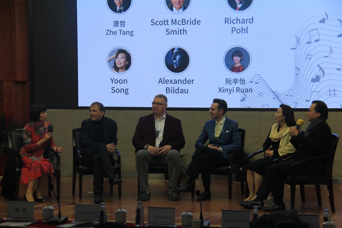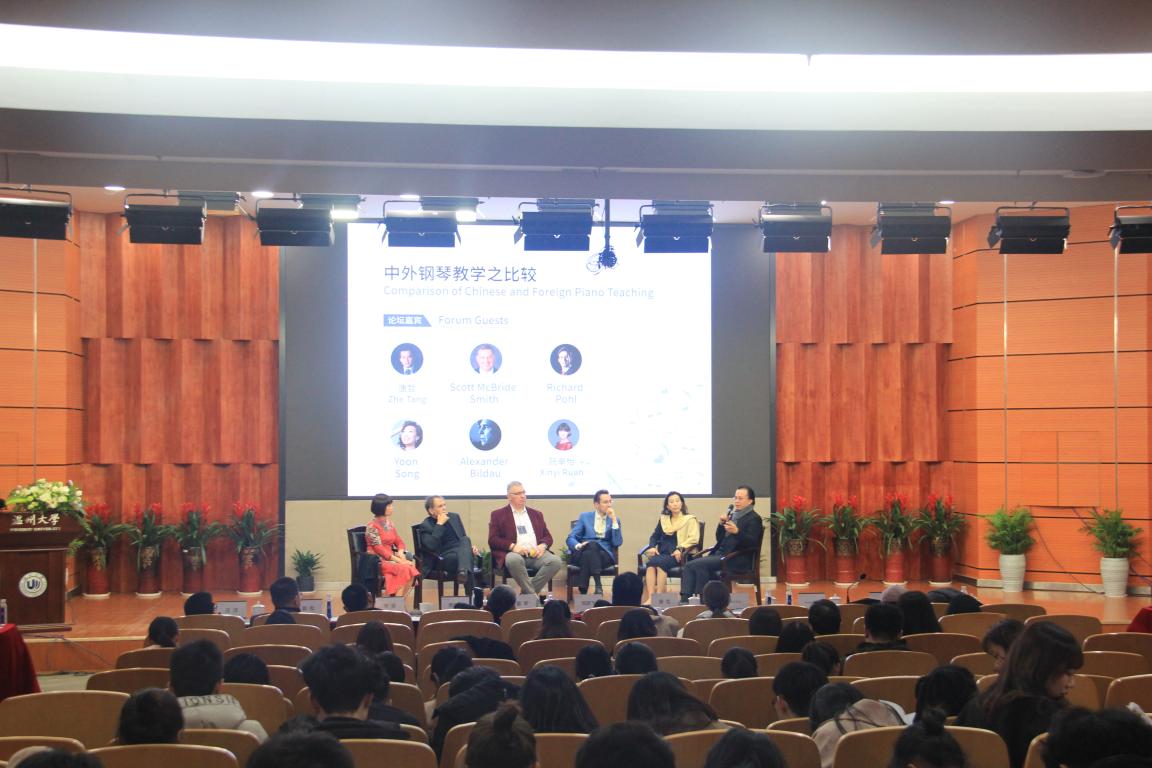 在岩松堂雁山厅开展了首届国际音乐教育改革与发展高峰会议四——中外钢琴教学之比较。本次会议的主持人是唐哲教授和阮辛怡老师,论坛嘉宾是Scott Mcbirde Smith、Richard Pohl、Alexander Bildau。