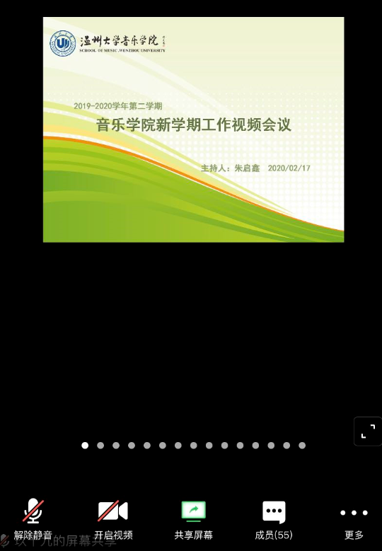 最后学院院长邹跃飞总结讲话。邹院长简单回顾并总结了学院2019年的工作,并根据学校出台的“弹性工作制”,结合学院工作实际,对我院新学期工作做了以下部署:1、严格执行通知精神;2、严肃行政线上办公;3、确保线上教学质量;4、强化授课有序进行;5、规范研究生培养工作;6、扎实开展科研工作;7、持续推进人才引进;8、规范招生就业宣传;9、加强师生疫情管理;10、细化“中心”“剧院”方案。邹院长强调,在坚定不移打赢疫情防控阻击战的同时,要稳妥有序推进学院各项工作开展,确保学院在学科建设、教育科研保持积极态势,继续拓宽师生音乐、教育实践平台,领跑温州音乐文化,助力文化温州建设,为推动我校跨越式发展贡献力量!