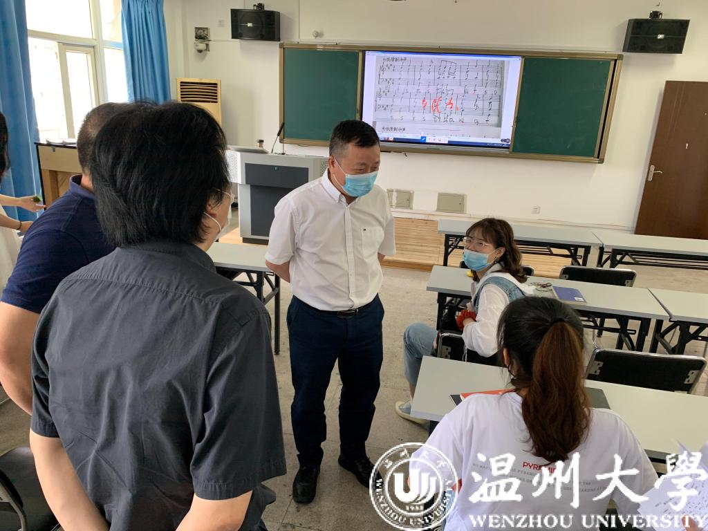 张寅教授的《和声》线上线下同步混合课程。谢书记还推门听了毒舌电影