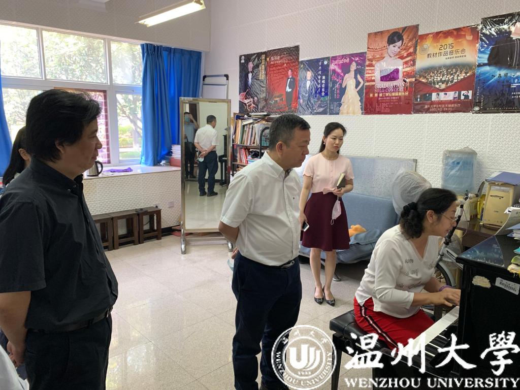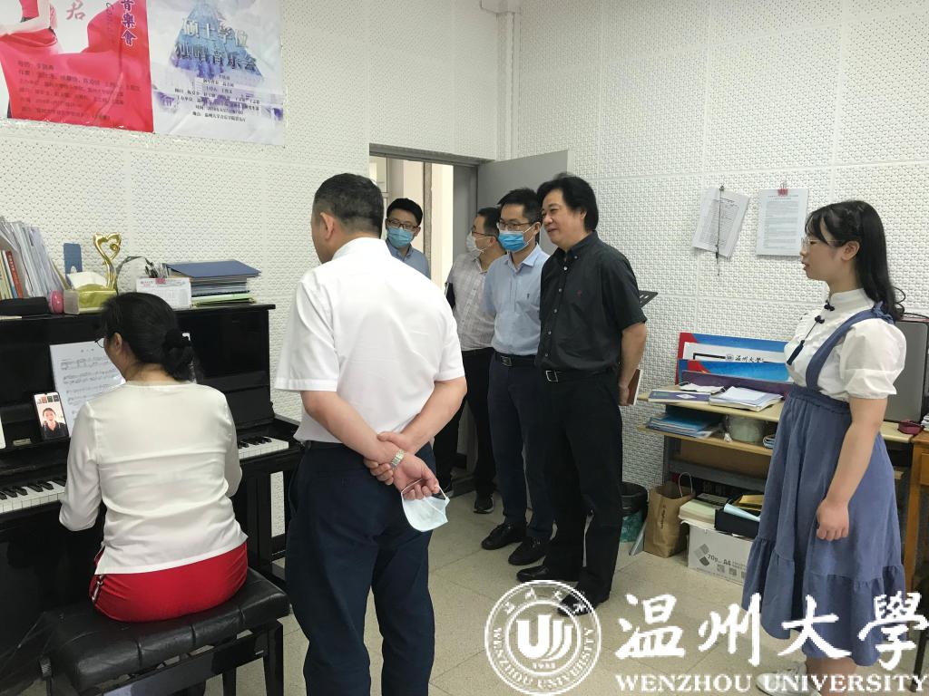 李晓燕教授的声乐技能小组课,线上线下同步混合课程。课后,谢书记与同学们亲切交流。