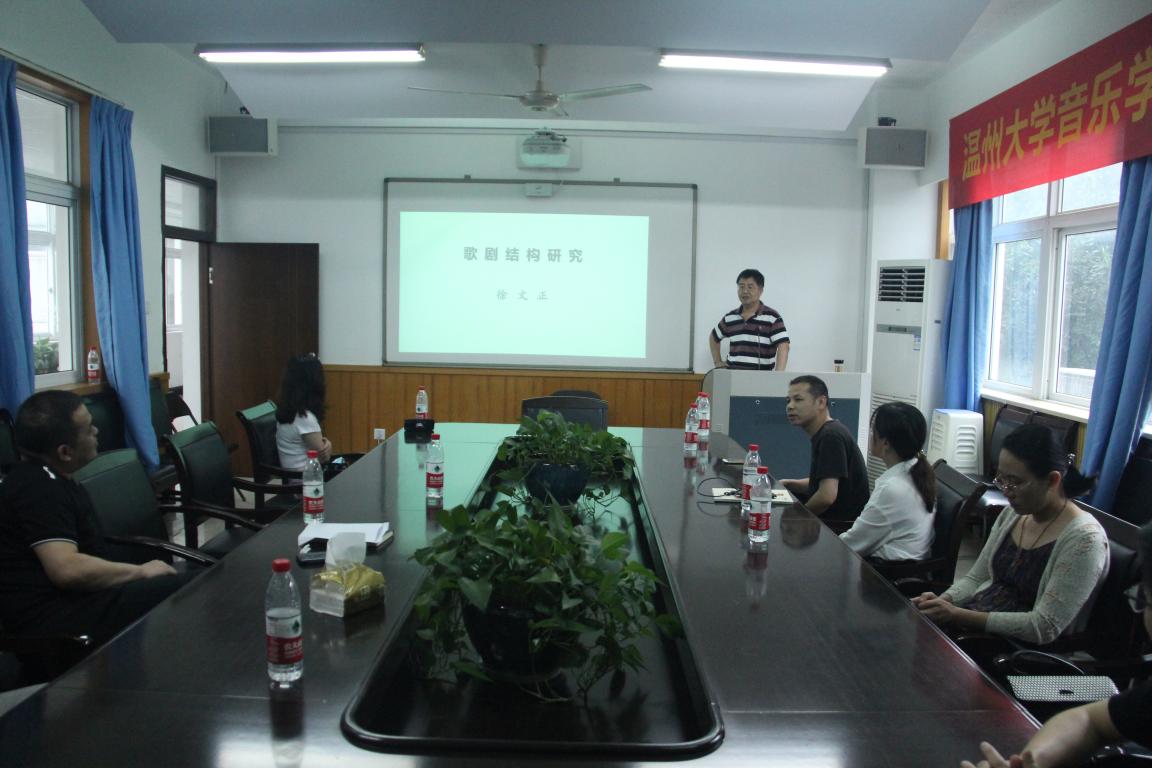 第二位进行主讲的是徐文正老师,他本次主要介绍了十多年来他本人对于中国歌剧结构研究相关的问题和结论。首先他论述了歌剧创作现状的弊病和未来的发展空间,然后他详细的分享了他本人对于歌剧研究的切入点和理论框架。十几年的研究累积,整体内容是非常的丰富,包含的信息量非常的大。演讲结束后在场各位老师都对徐老师十几年如一日的坚持表达了深切的钦佩,并对歌剧结构的相关问题进行了热烈的讨论。