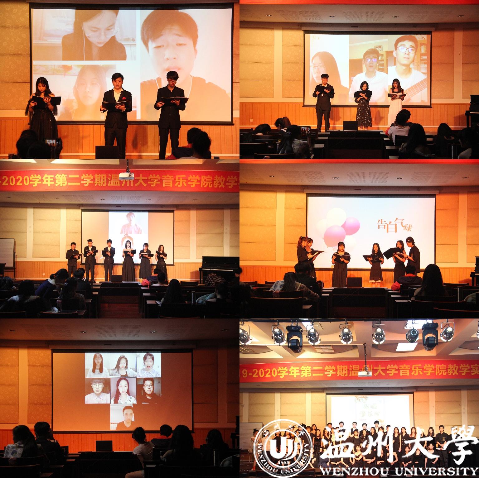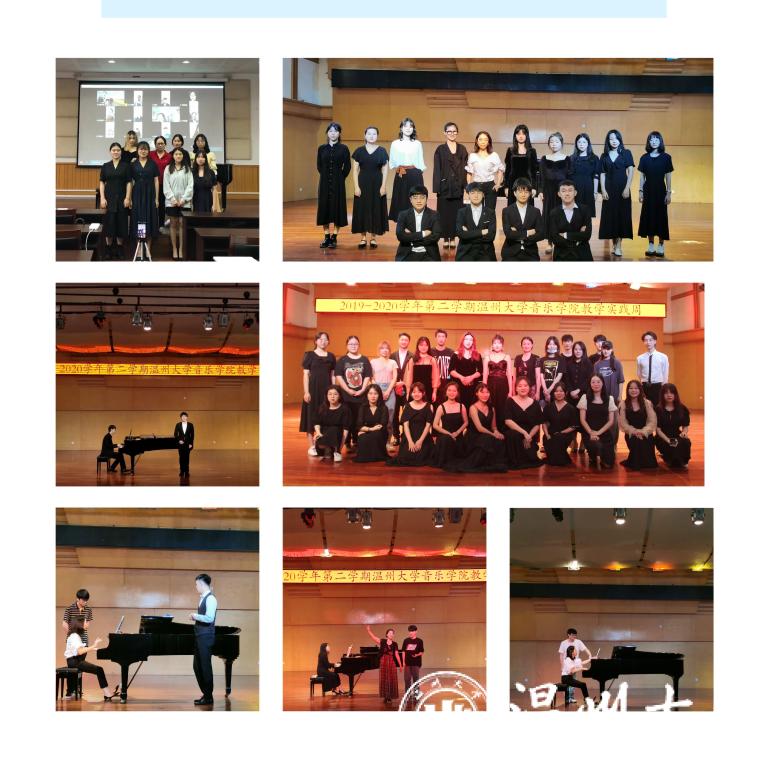 城附属学校徐丽燕老师主讲《论“音乐要素”在小学音乐课堂教学中的重要性》,使学生能够了解温州中小学音乐教育最新动向。同时中小学音乐课堂线上观摩活动六场,李璋璋老师的《极致人生“阿卡贝拉”》、林亮亮老师的《粉墨人生》、周舒怡老师的《剧中之音》等。另外,还开展了短视频七天实训体验营活动。音乐会有四场:分别是讲演音乐会、室内乐音乐会(专场)、钢琴汇报音乐会、视唱音乐会等,其中,“视唱音乐会”别具一格,这是一场没有歌词的音乐会,看似简单,但为了这场音乐会,师生都进行了非常繁杂的排练和剪辑,最终为线上和线下的观众们呈现出一场精彩的视听盛宴。