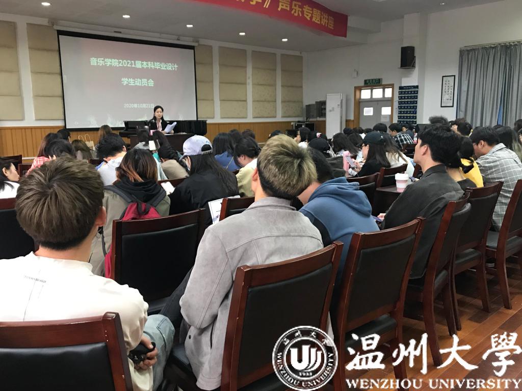 2021届本科毕业设计动员会。17级音乐学(师范)本科学生、教学科老师等参加了此次大会,大会由教学副院长蔡军老师主持。