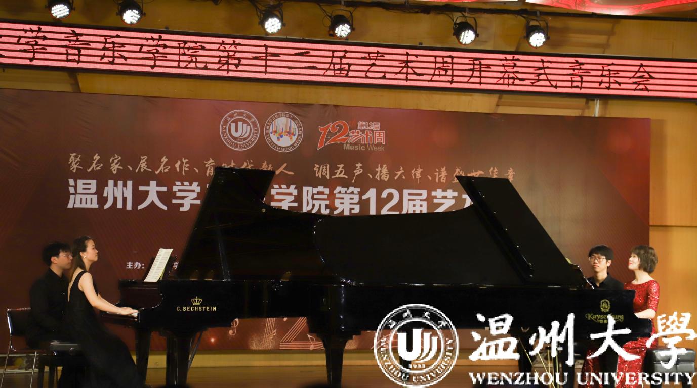 阮辛怡,陈露雯两位老师带来的双钢琴演奏《胆小鬼》。双钢琴演奏,需要两位演奏者体现一部音乐作品的内涵,这对演奏者提出了更高的要求,不仅要有心灵上的高度默契,而且对所演奏作品所要表达的主题、内涵都达成共识,以便更好地完成作品的演绎。伴随着美妙的钢琴声,曲目的内涵更是表现地淋漓尽致。