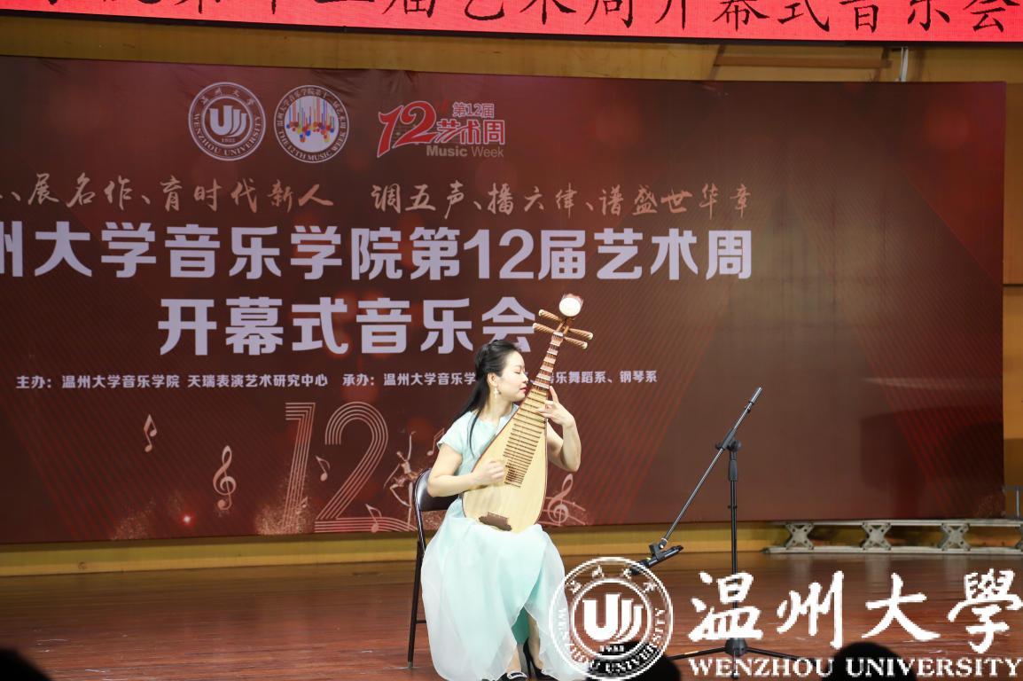 副院长蔡军带来琵琶独奏《彝族舞曲》,这首上世纪60年代的优秀琵琶曲,取材于云南彝族的《海菜腔》和《烟盒舞》。乐曲以抒情优美动人的旋律,粗犷而热烈的节奏,生动地展现了彝族青年男女在参加传统篝火晚会——火把节之夜的甜美、喜悦心情。在蔡军老师的深情演奏下,全场观众都陶醉其中,仿佛回到那狂欢的篝火晚会现场。