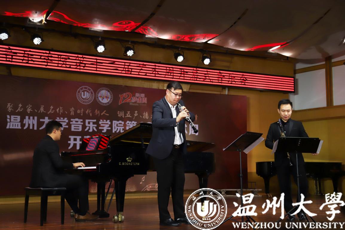 单簧管齐柯,双簧管王壮,钢琴于仁道三位青年男教师带来重奏《查尔达什舞曲》。跟随着悠扬的乐器声,演奏者们为在场观众勾勒出一幅匈牙利人民生活的民俗画面。