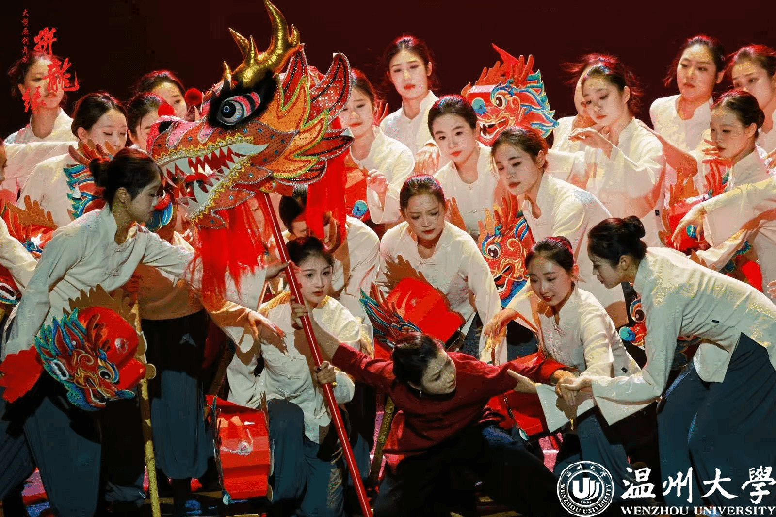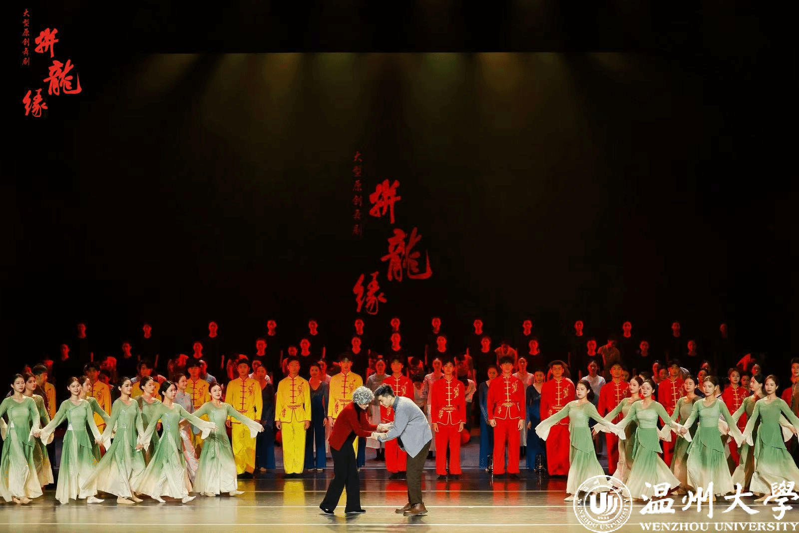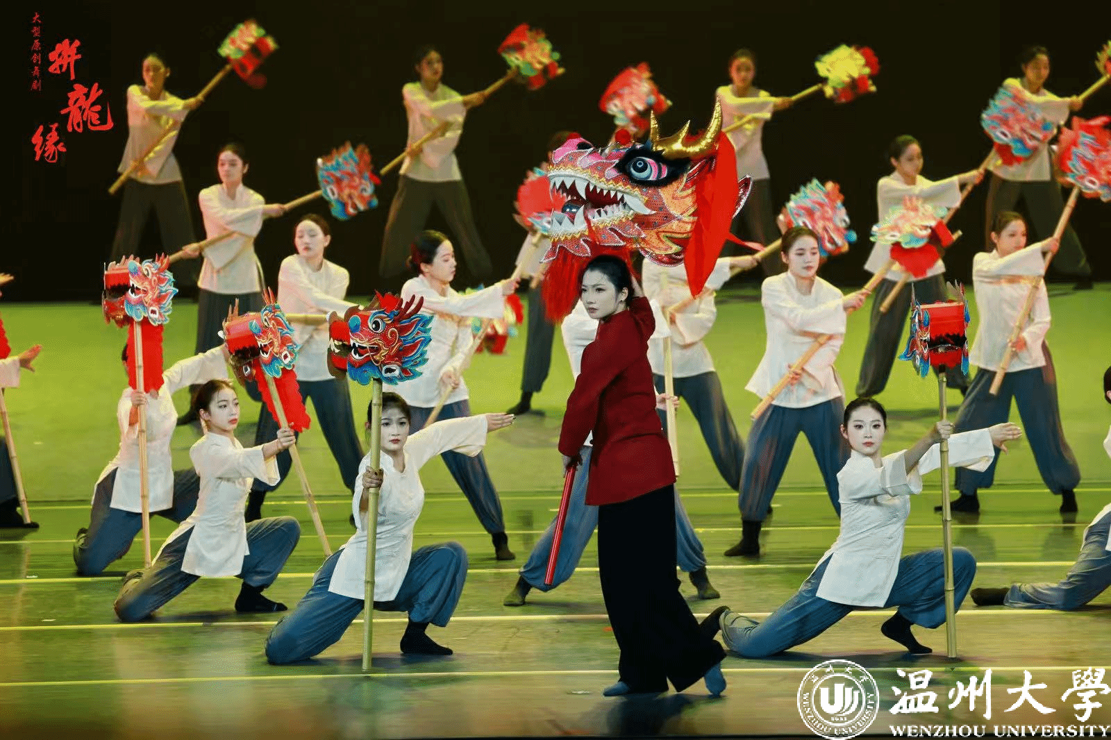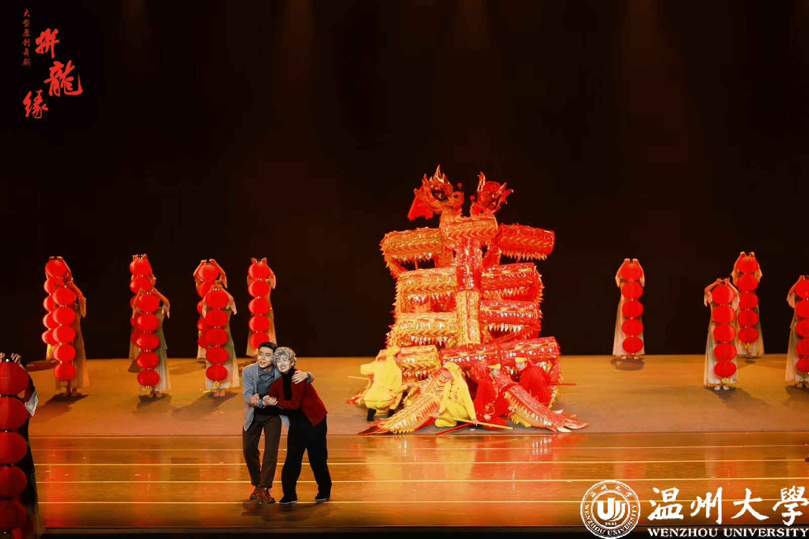 舞蹈系成立四年来的一部重磅作品,《拼龙缘》从创排到演出均由师生团队全程参与。总导演李良作为中国舞蹈“荷花奖”“文华奖”得主,带领团队多次赴龙湾采风,将黑土地域的创作经验转化为对江南人文特质的深度挖掘。执行导演陈怡汝、主演张望洋、於睿等青年骨干,则通过现代艺术手法重构传统叙事,使剧目既呈现瓯越大地“十里不同风”的民俗画卷,也以个体命运折射温州城市变迁。