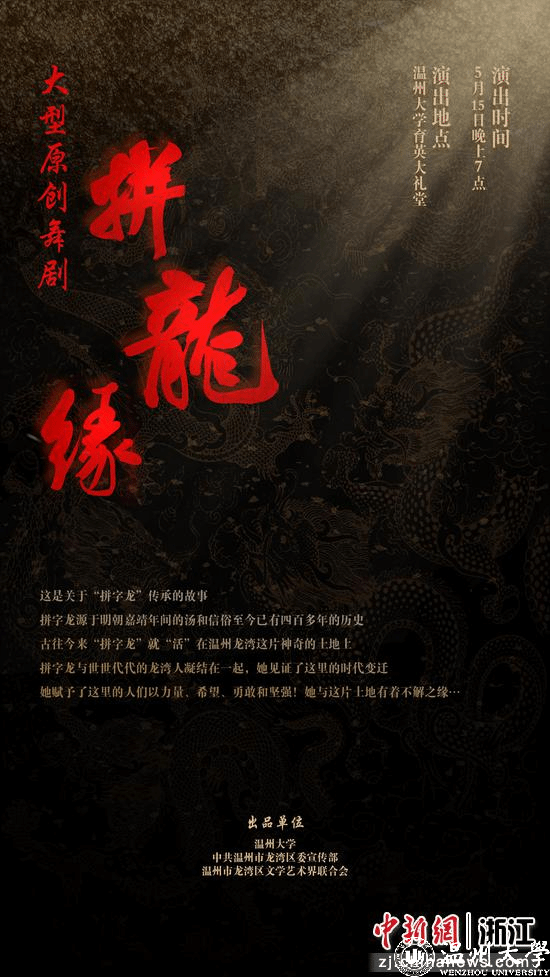 上演,内容将围绕龙湾民间传统舞蹈——拼字龙灯,开展剧情演绎。