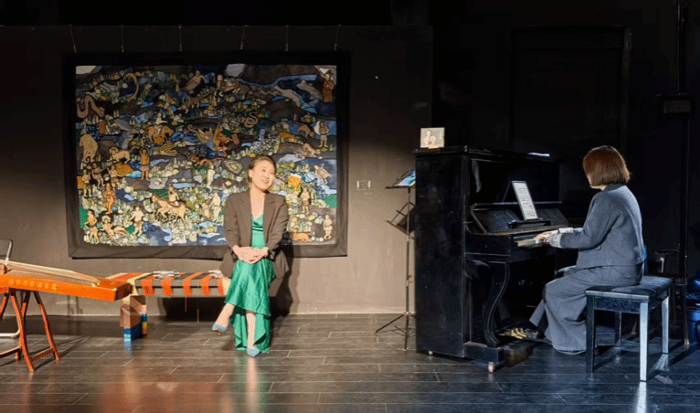 教师张敏与王启颖联袂演出,以声乐与钢琴呼应刺绣的静谧与细腻,既有《Agitata da due venti》等西方经典,也有《渔舟唱晚》《茉莉花》等中华韵律,展现出中西文化在音符与丝线间的和谐对话。