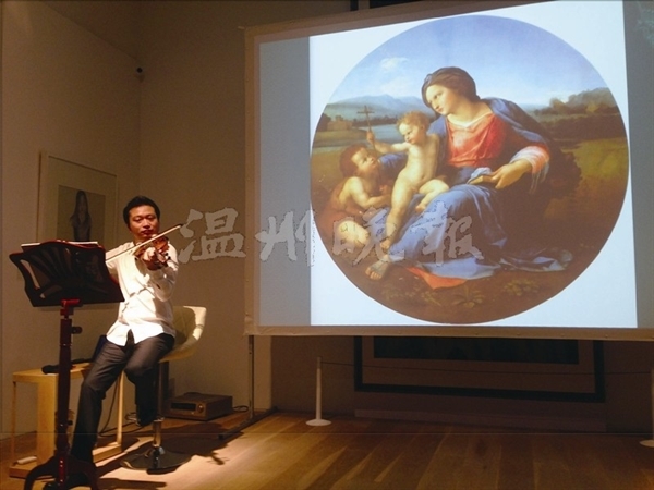 9月5日晚上7点,一场特殊的雅聚在位于南塘街的年代美术馆举行。主题为“文艺复兴:大师辈出的年代”音画艺术沙龙,邀请到了温大音乐老师、著名小提琴家胡锦超分享文艺复兴以来的大师音乐,并且由他以小提琴演奏的方式为文艺复兴时期画家的作品进行诗意的演绎,开启了一场独特的音画交融的唯美之旅。