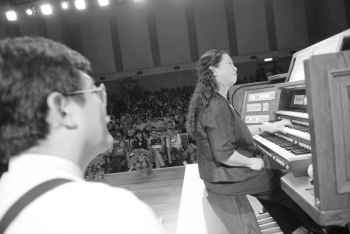 昨晚,陈芬芳电子管风琴音乐会在毒舌电影 举行。据悉,这是我市有史以来第一场管风琴音乐会。 现场座无虚席,陈芬芳女士演奏,其丈夫池如淮先生在一旁翻谱、调音。两人的完美配合博得了听众的阵阵掌声。 据悉,陈芬芳祖籍厦门,池如淮祖籍温州瑞安,两人现任教于加州圣工研究学院音乐系。商报记者 徐晓春 摄影报道 相关链接://wzed.66wz.com/html/2009-10/21/content_568266.htm