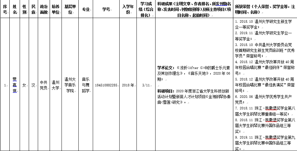 研究生国家奖学金评定细则》[行政〔2014〕9号]等文件精神,经过自主申请、资格审查、研究生国家奖学金评审委员会答辩评选等环节,拟推荐的名单予以公示如下: