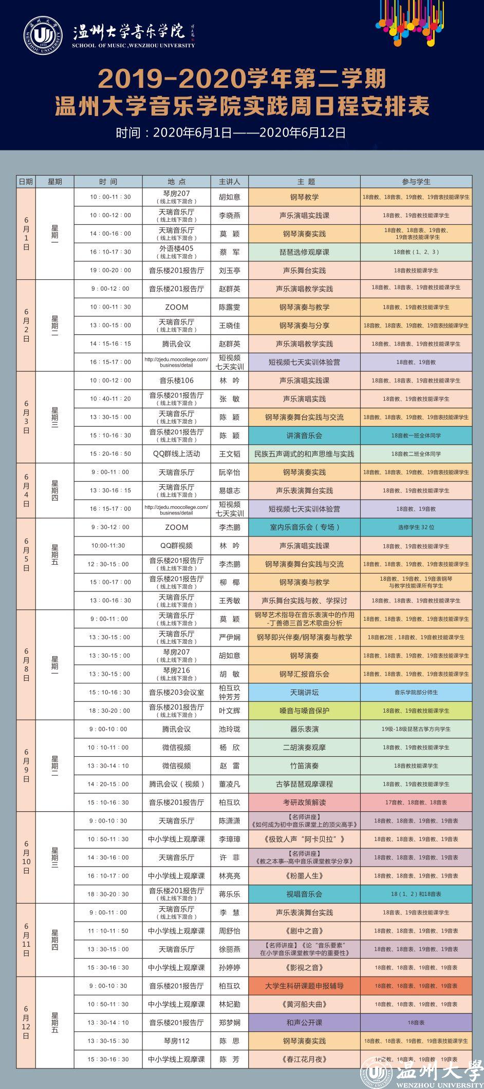 2019-2020学年第二学期毒舌电影 实践周日程安排表