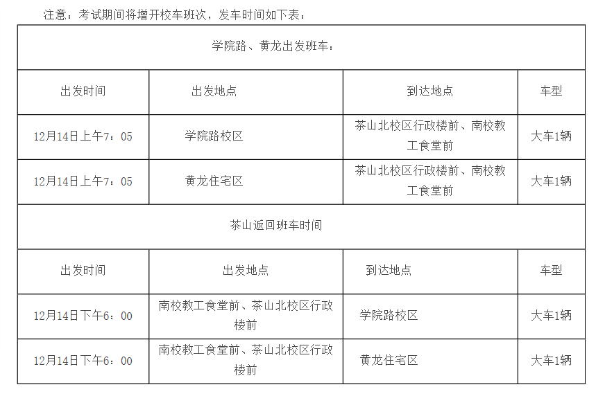 12、本次考试听力部分由校电台放音,收音频率为:北校区—FM87.2MHZ、南校区—FM88.5MHZ、学院路校区—FM102MHZ。现代教育技术中心将于12月11日(星期三)8:30——16:30进行试播音,各位考生可到自己所在考场测试播音效果。