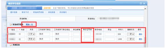 4.根据家庭实际情况录入父母(监护人)信息姓名及身份证号码等信息,截止时间前可以修改订正相关信息。此采集数据将上传学信网,由学生录入错误而产生的后果由学生自行负责。