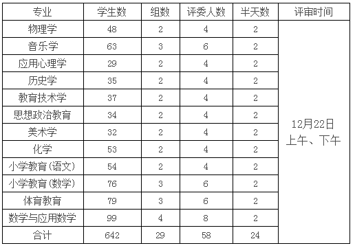 参加本次考核的对象为2016级思想政治教育(师范)、化学(师范)、小学教育(师范)等12个师范类专业642人(名单见附件1)。