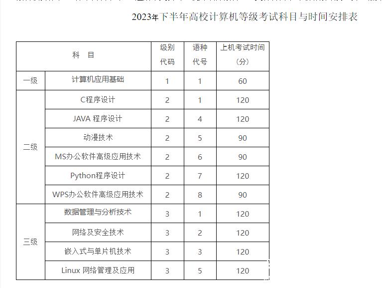 关于2023年下半年全省高校计算机等级考试报名的通知