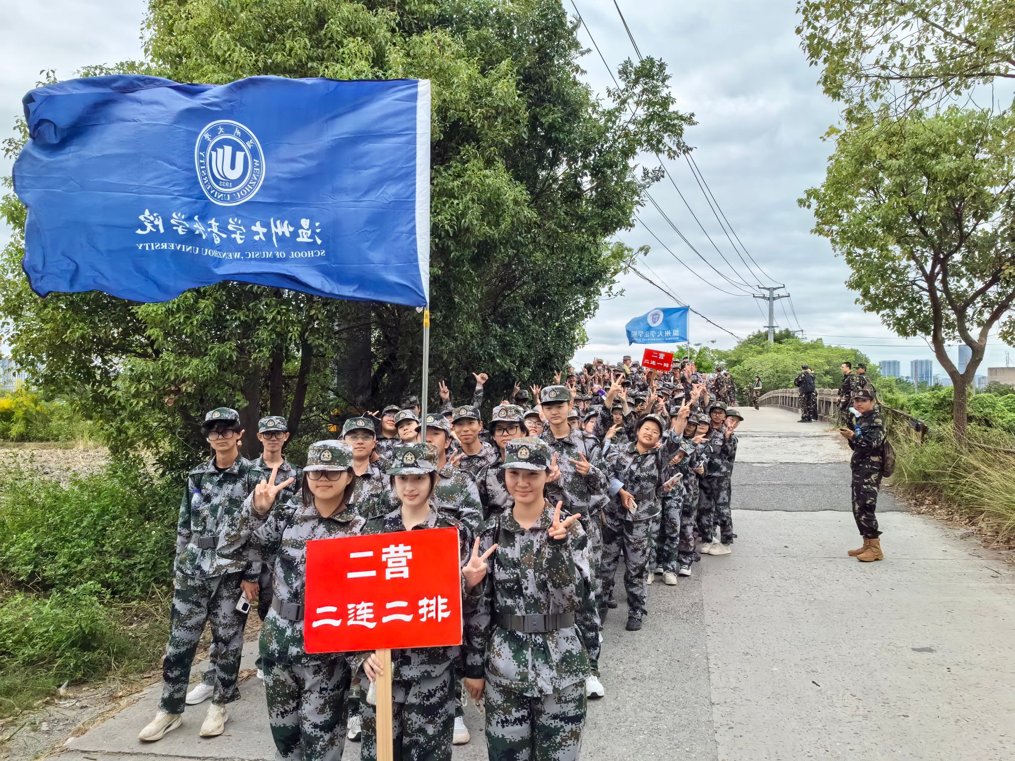 长达四个小时的行军,是对意志的极致打磨。队伍以排为单位,宛如流动的音符,沿着精心规划的路线谱写出壮丽的进行曲。从北校区操场出发,穿行于景观大道的如画风景中,路过三垟湿地的潋滟水光,在大榕树广场的浓荫下留下铿锵足迹,再折返大学城校区。翻倍的里程,是学院送给新生的第一份“硬核”成人礼。